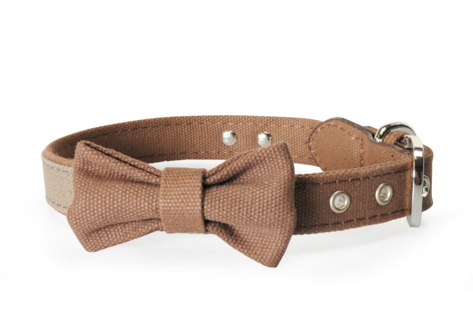 A charming fabric collar decorated with a bow.