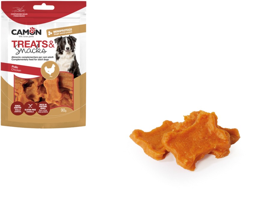 Delicious Bone-shaped chicken snacks, a useful complementary chewable food for dogs.
