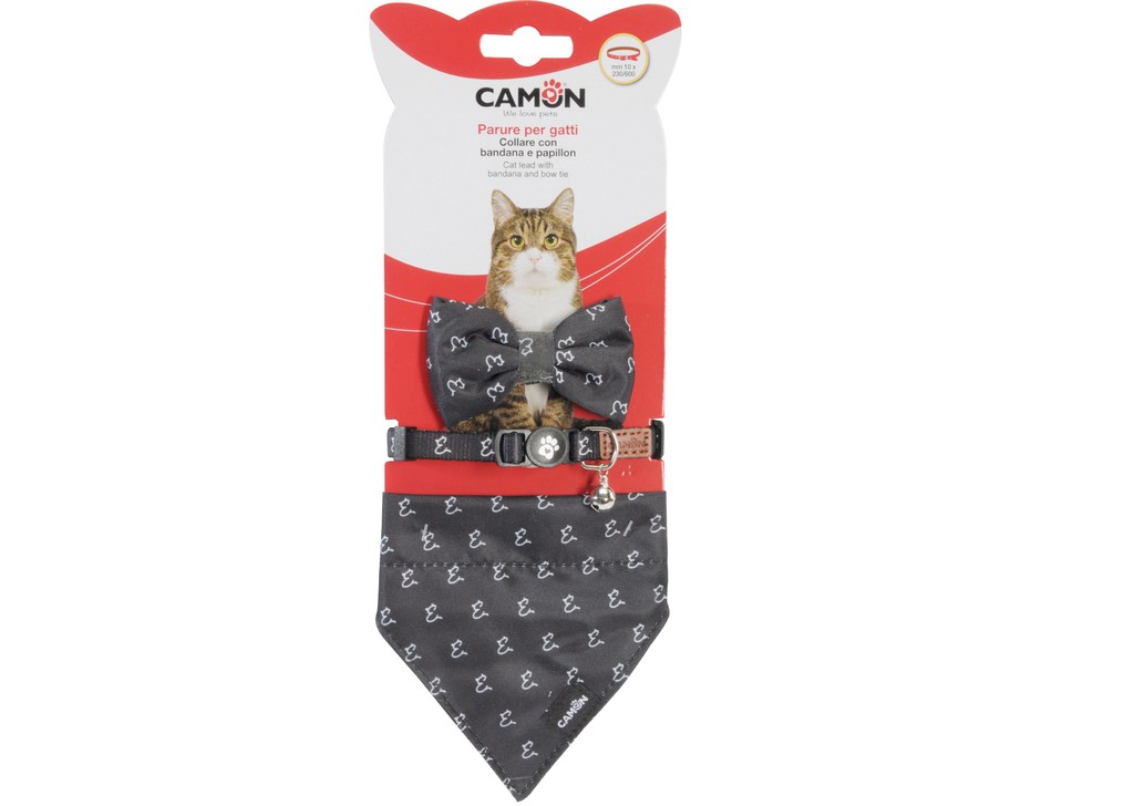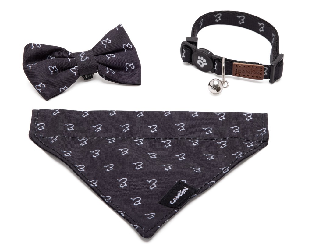 Elegant cat set consisting in a collar with bandana and bow tie.