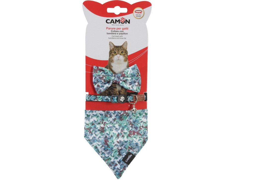 Elegant cat set consisting in a collar with bandana and bow tie.
