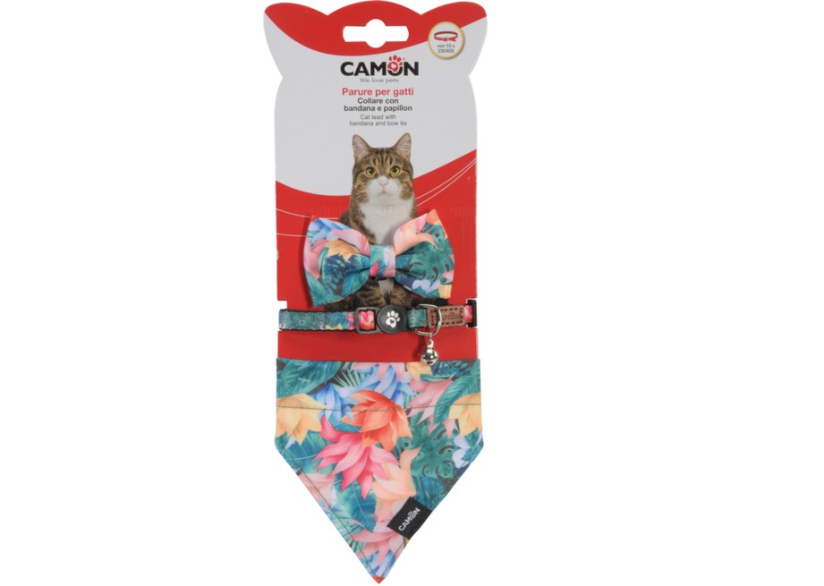 Elegant cat set consisting in a collar with bandana and bow tie.