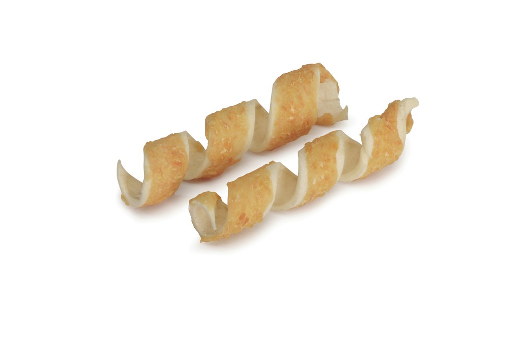 Rawhide curls with chicken, a tasty chewable complementary feed for adult dogs.