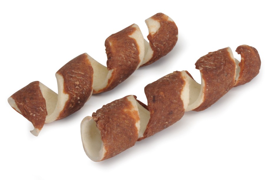 Rawhide curls with rabbit, a tasty chewable complementary feed for adult dogs.