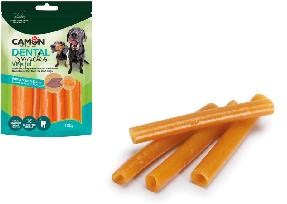 Delicious vegetable snacks with sweet potato and pumpkin, contained in a convenient package with freshness-saving closure.