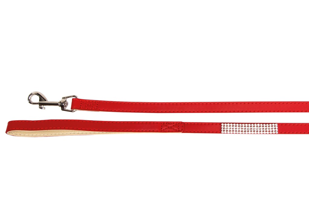 Genuine leather dog leash with an elegant and sophisticated design featuring a crystal embellishment.