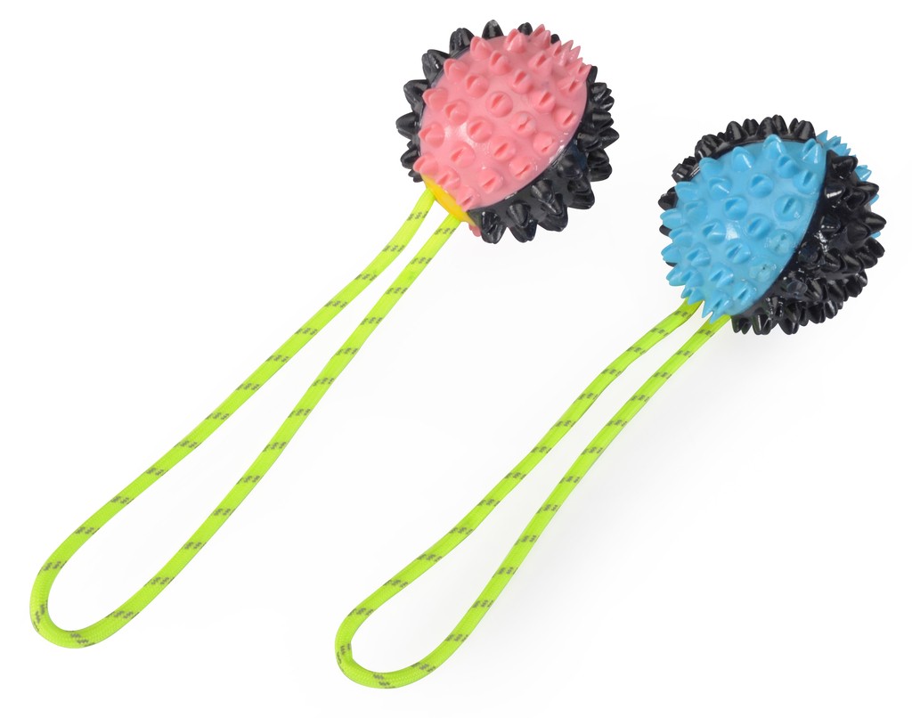 Dog toy - Bicoloured TPR ball with spikes and rope