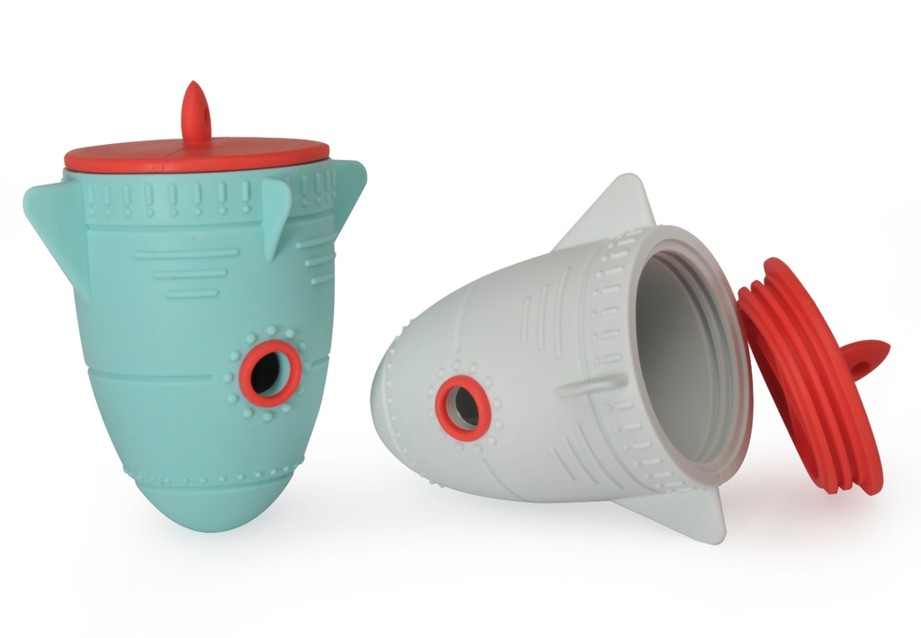 A fun dog toy shaped like a detachable Space Shuttle, made of silicone.