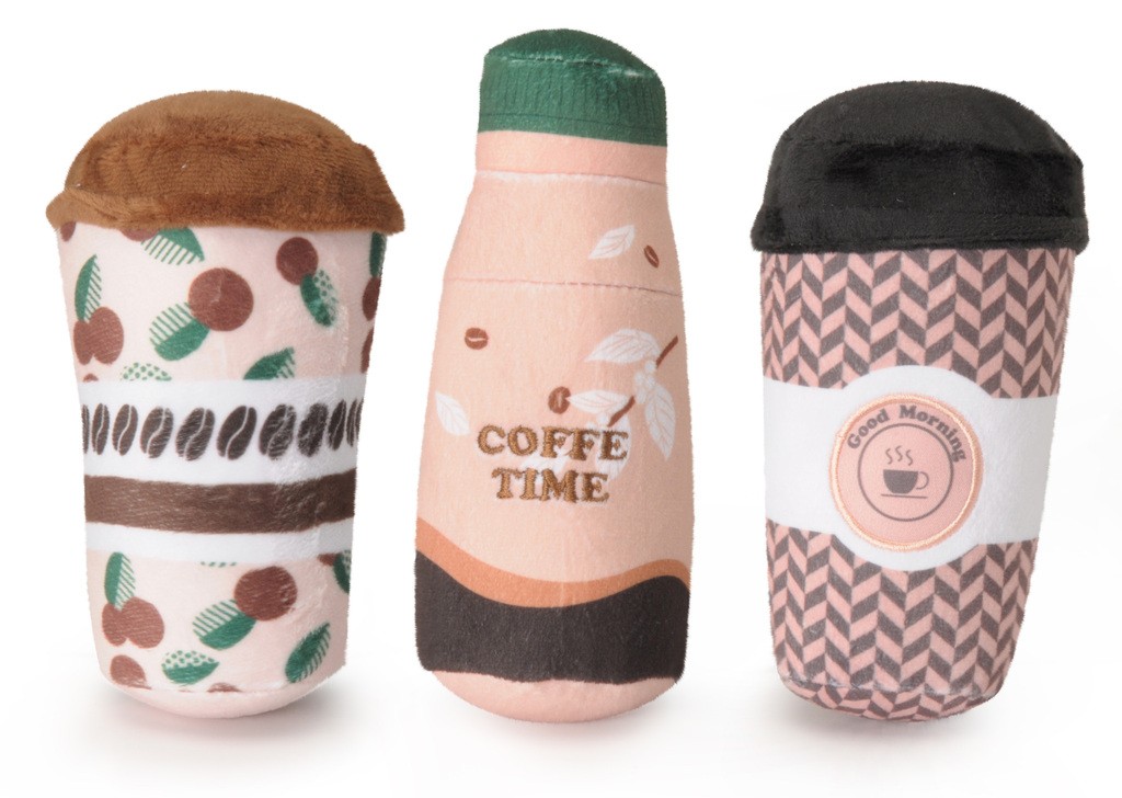 Funny plush toy for dogs, shaped like cute drink containers.