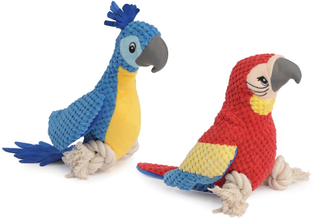 Dog toy - polyester and rope parrot with squeaker and crinkle