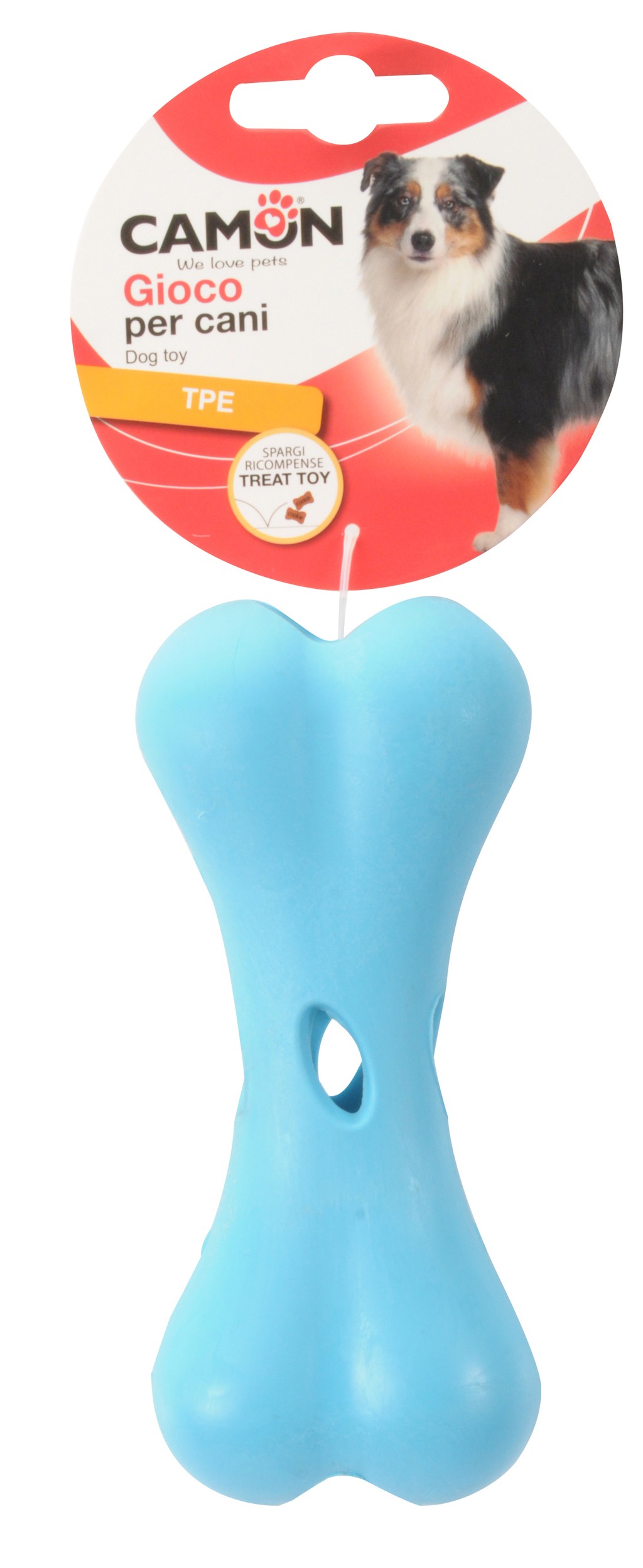 Funny TPE treat toy for dogs, in the shape of a bone.