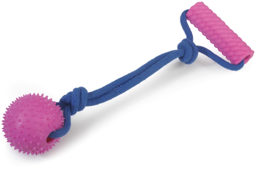 Dog toy - TPR and polyester toy with rope - ball with dumbbell