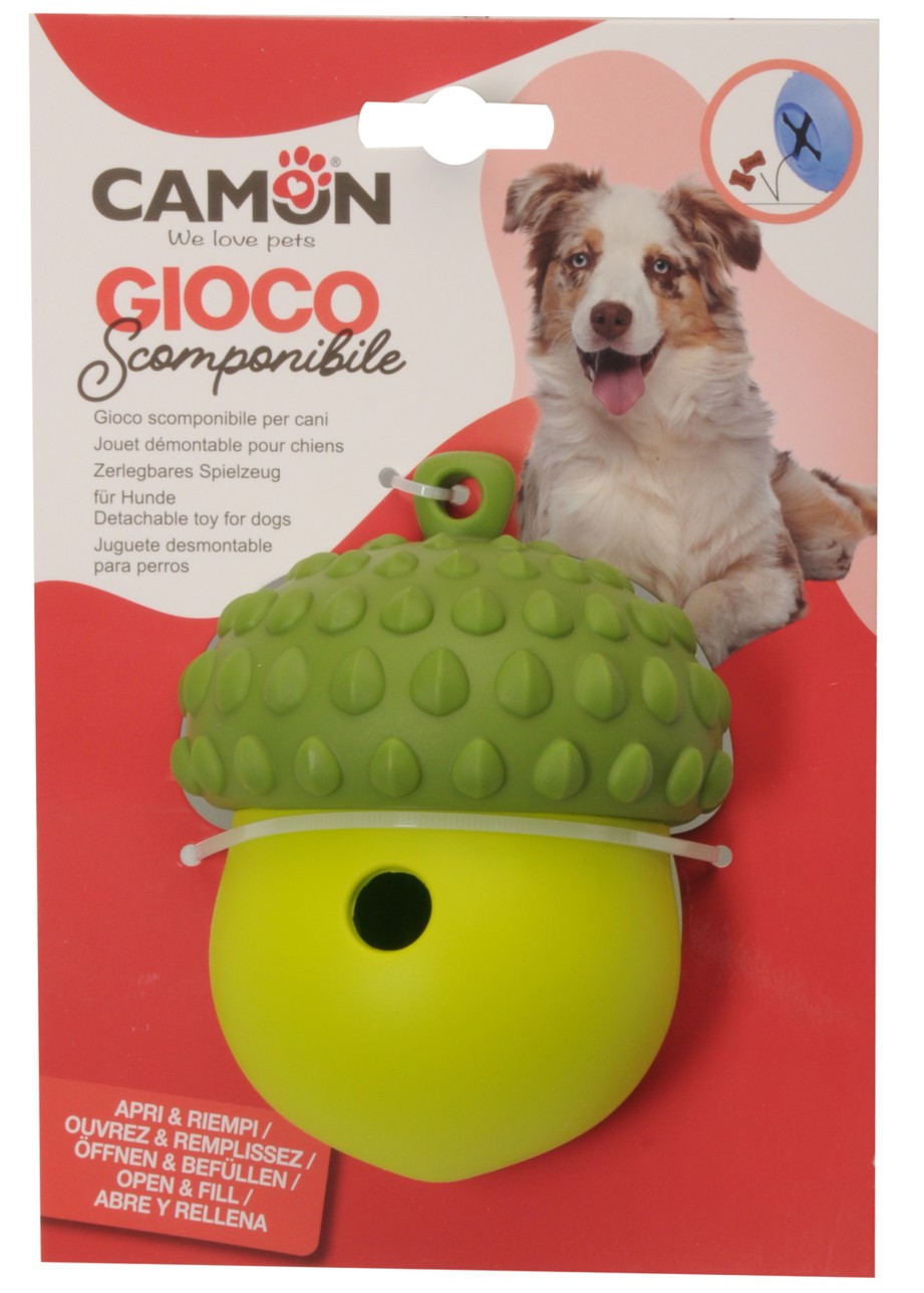 This TPR cylinder contains a plastic bottle that stimulates healthy movement. Furthermore, its outer surface was designed to help massage your dog’s teeth and gums.