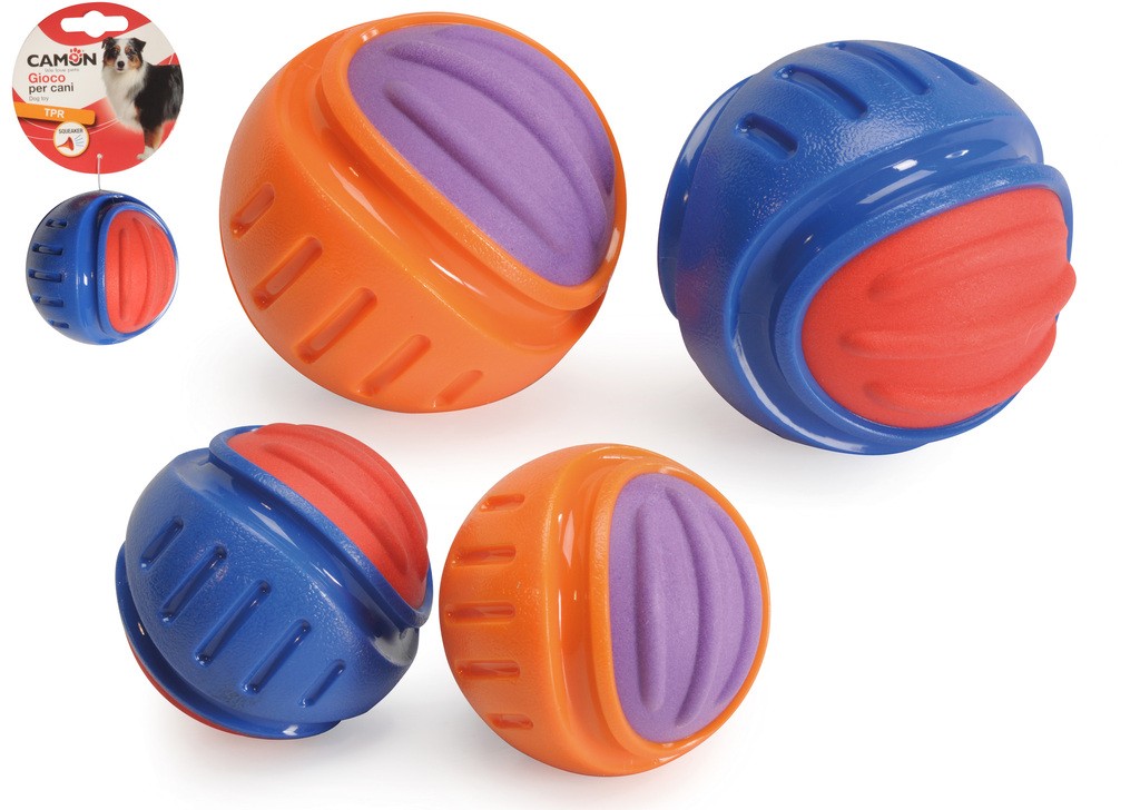 Funny and colorful dog toy in the shape of a two-tone TPR ball.