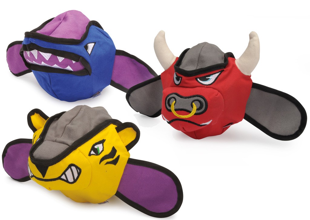 Funny and colorful polyester toys for dogs in the shapes of 3 nice and ... gritty animals such as shark, tiger and bull.