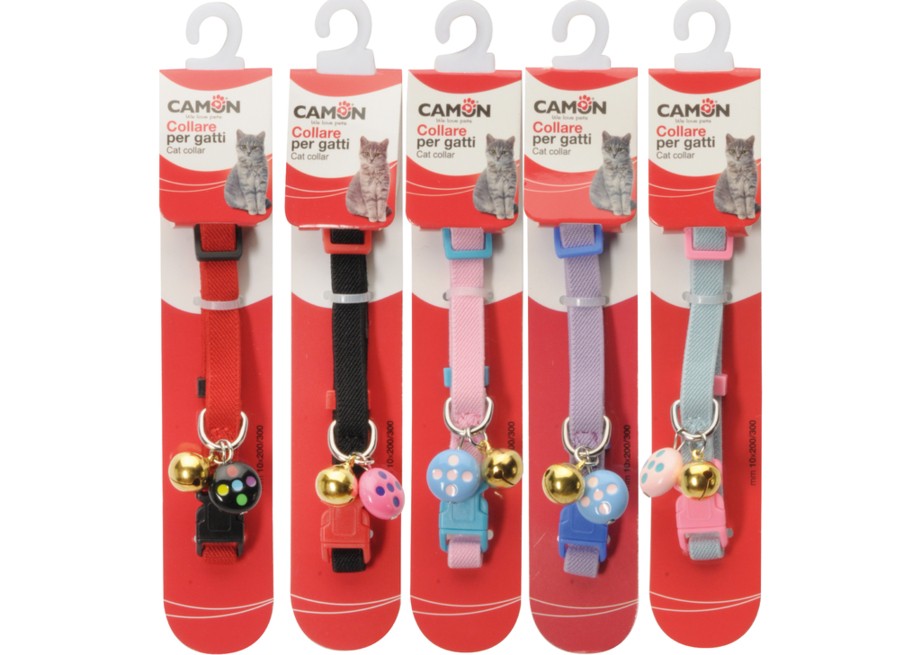 Practical and colorful bicolor elasticized nylon collars for cats.