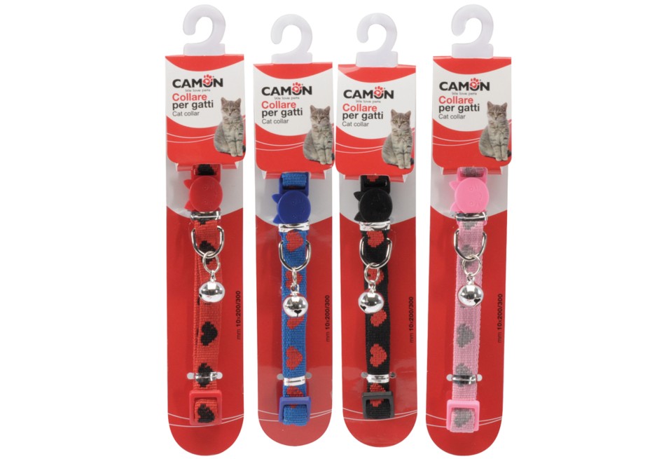 Practical and colorful elasticized nylon collars for cats in the nice "Hearts" pattern.