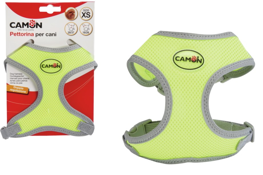 The harness is very easy to put on: it can be quickly adjusted around the neck and chest.