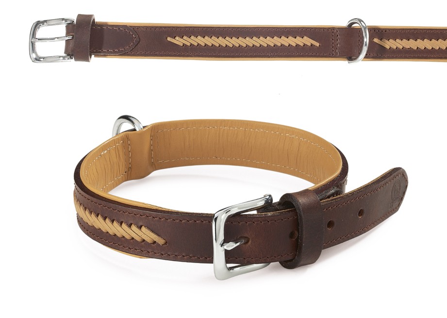 The "Indiana" collar has two layers to increase its safety and softness, and it is characterised by a leather decoration.
