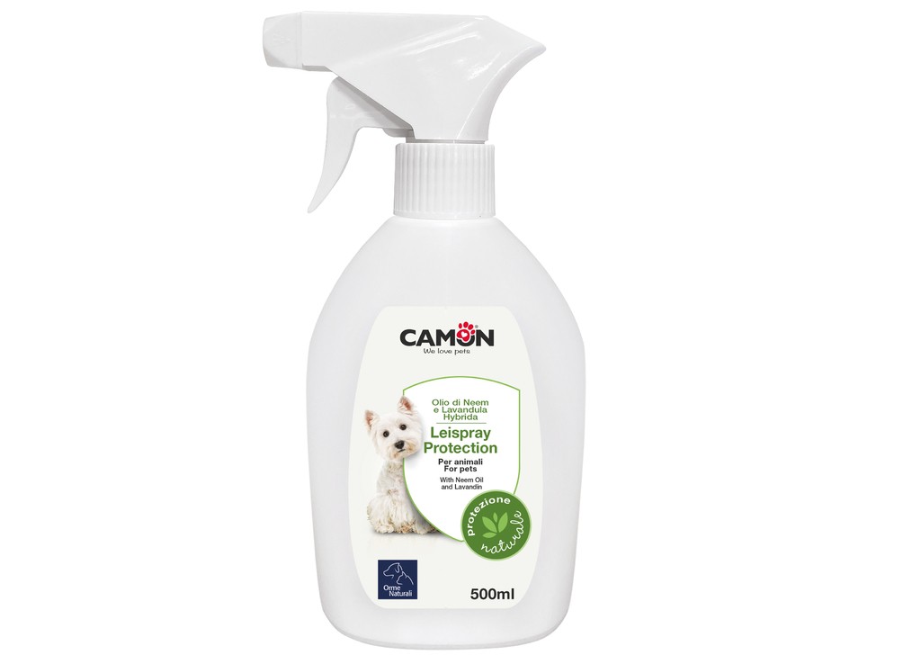 Leispray is a lotion, based on the special formula with Neem Oil and Lavandula Hybrida, that builds a barrier effect on the fur.