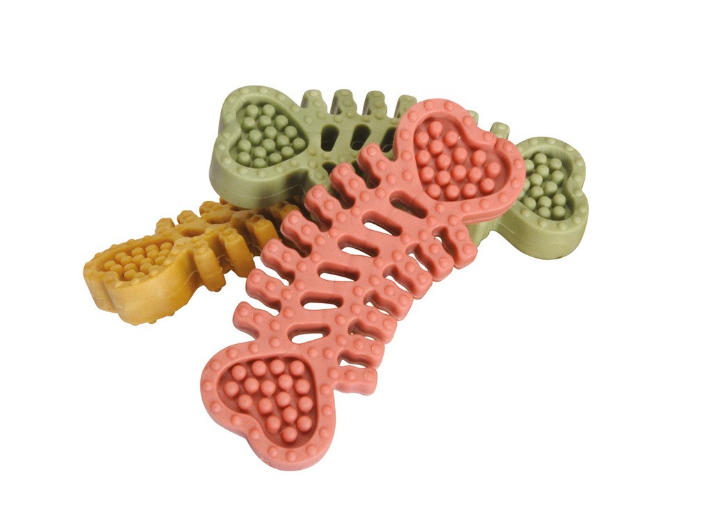 Delicious vegetal snacks in the shape of a fishbone, a chewable complementary food for dogs, very useful also for dental cleaning.