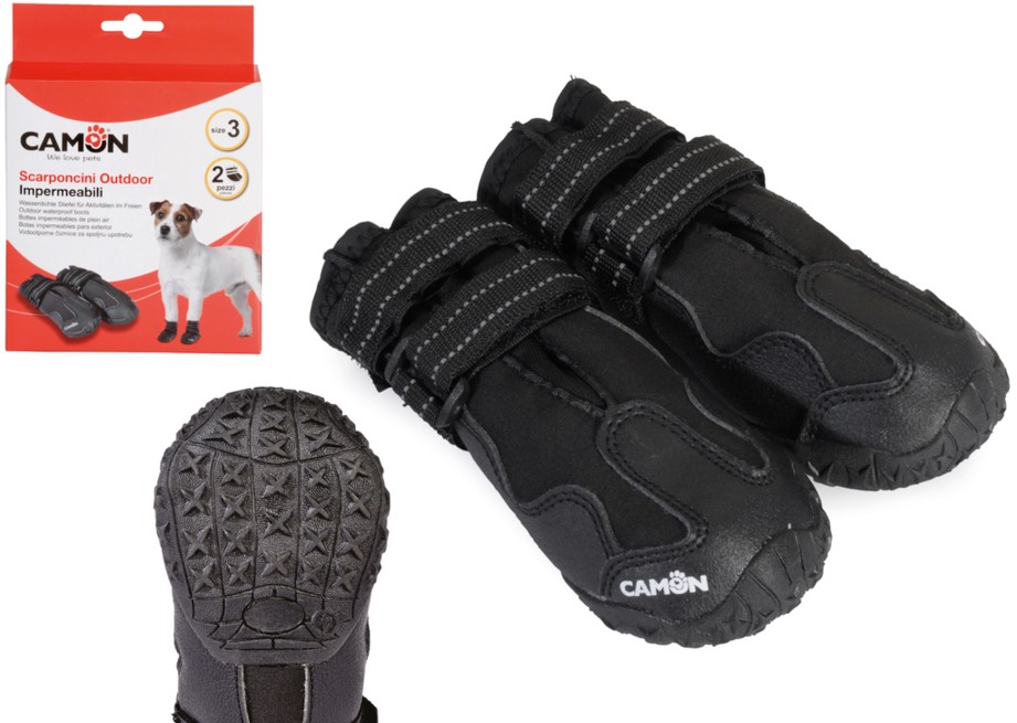 Protects your dog’s paws from cold and ice, damp weather, and harsh surfaces. Shields injuries to assist healing.