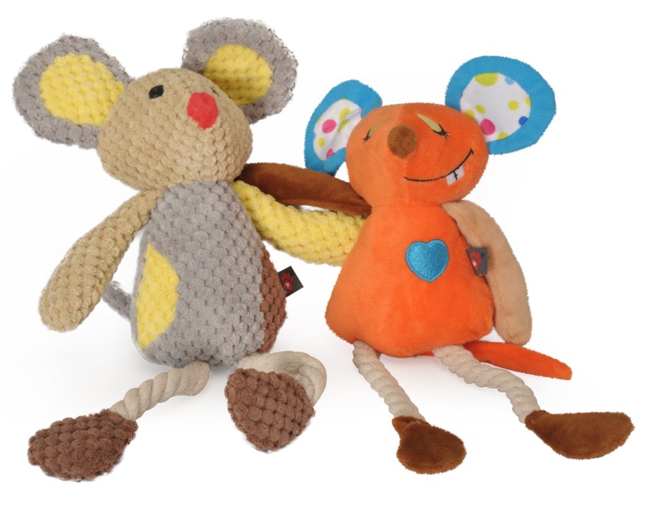 Funny and colorful dog toy, shaped like polyester animals.
