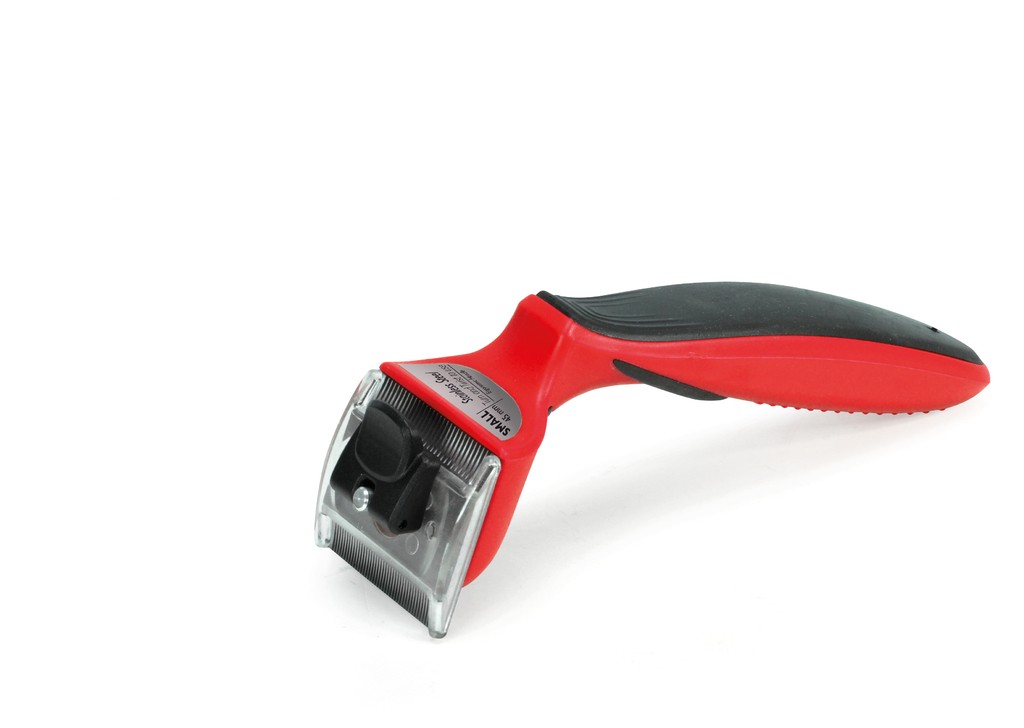 This professional deshedder removes moulting and loose hair in your pet’s thick, wire or fine coat thanks to its double-toothed stainless steel blade and to its convenient rotating system.