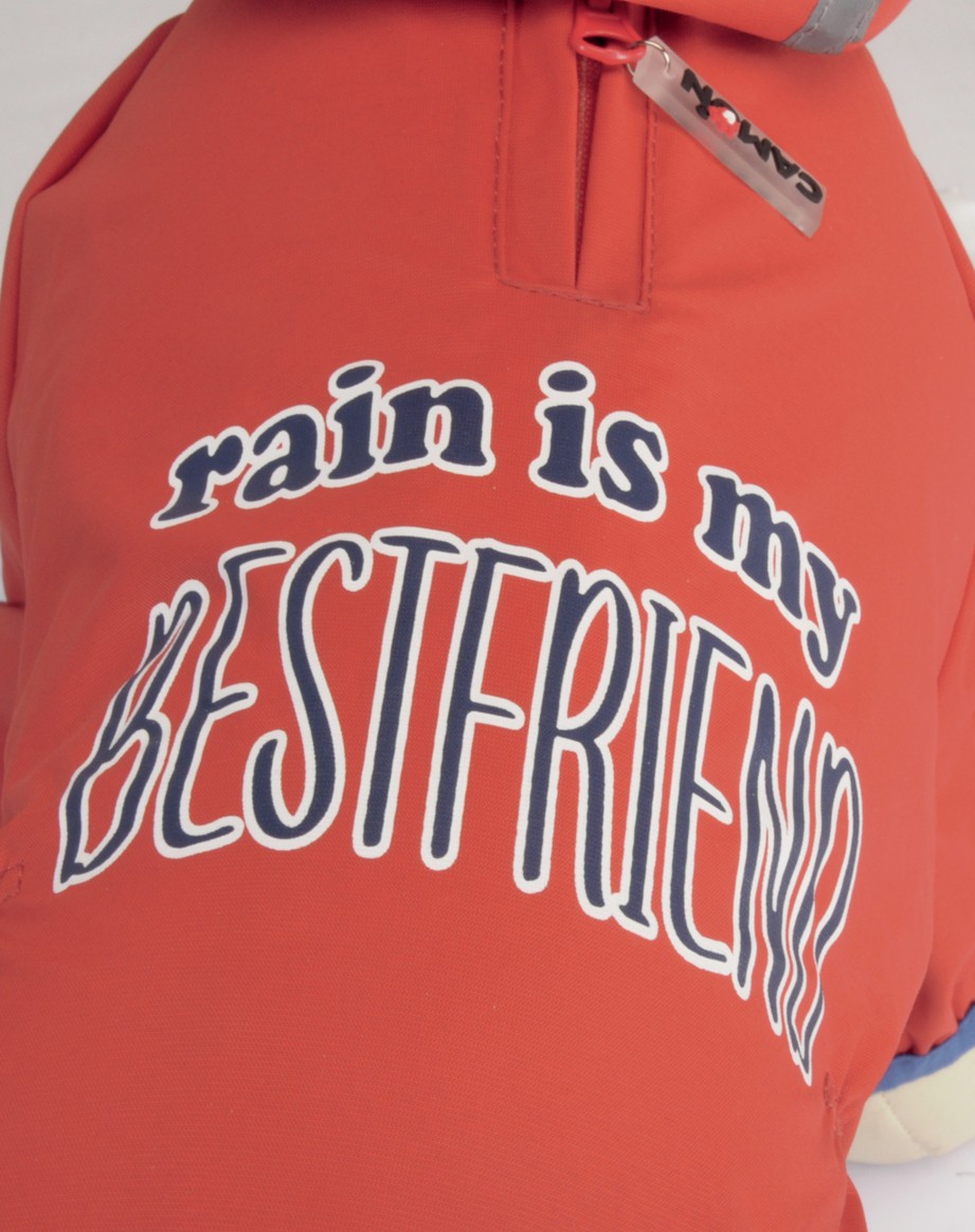 Equipped with 2 reflective bands on the hood and "Rain is my best friend" writing.