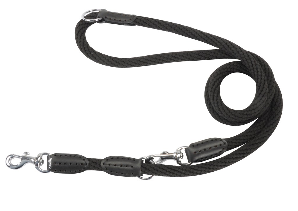 Training leash in 100% cotton rope and leather inserts.