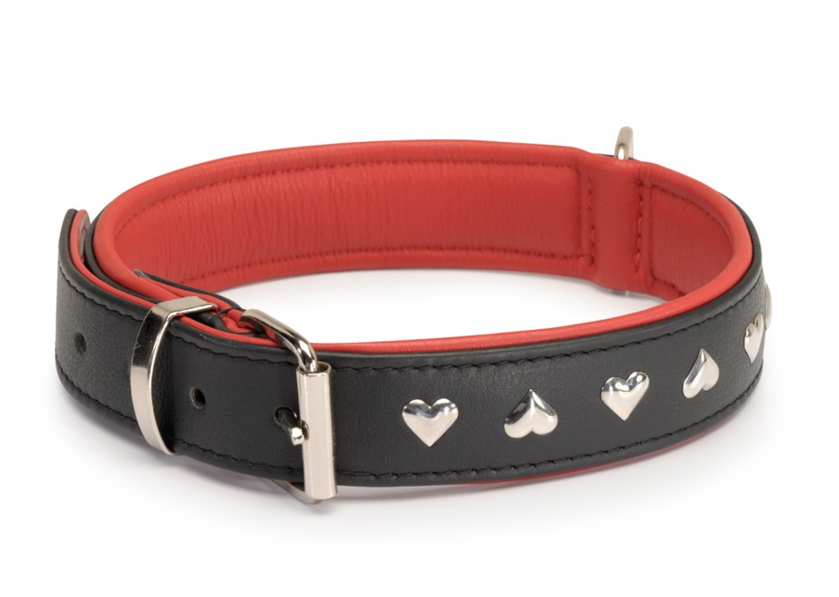 Elegant soft leather collars with metal decorations in the shape of little hearts.