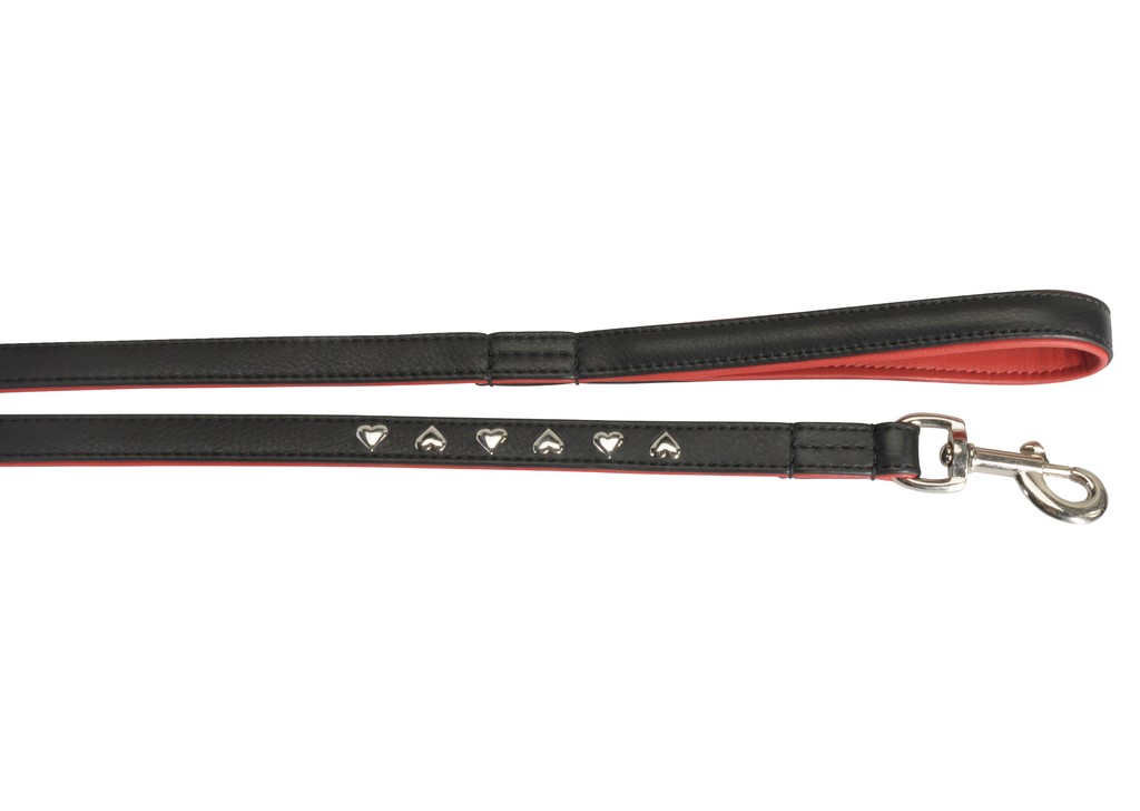 Elegant soft leather leash with metal decorations in the shape of little hearts.