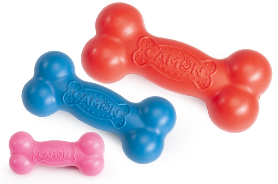 Fun TPR game for dogs in the shape of a bone and with an internal squeaker.