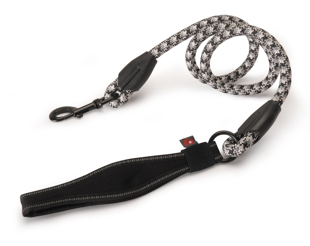 Tubular dog leash with neoprene handle - black/grey
