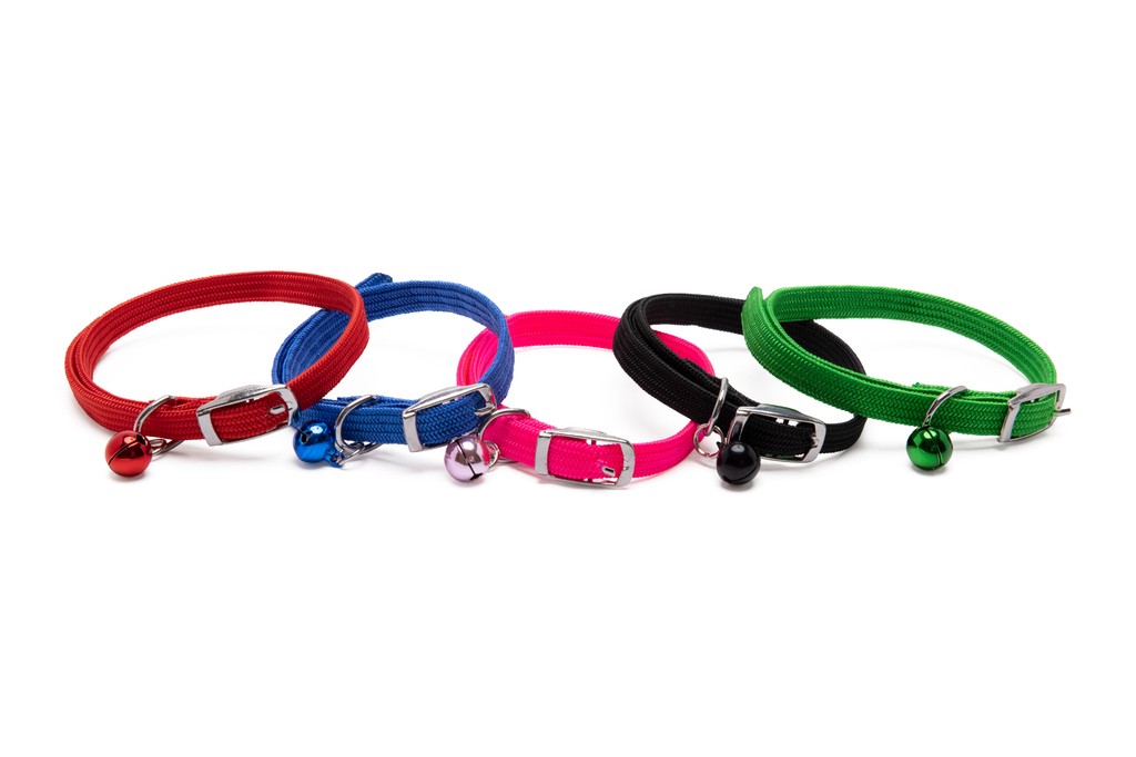 Graziosi collarini elasticizzati per gatti, dotati di un piccolo campanellino.