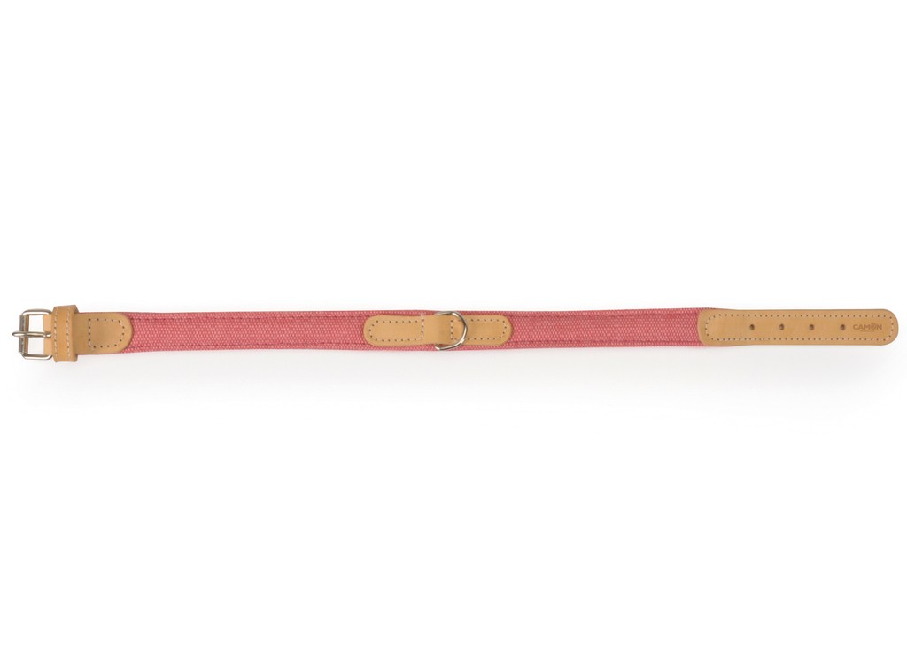 Collare in tessuto e cuoio - rosa