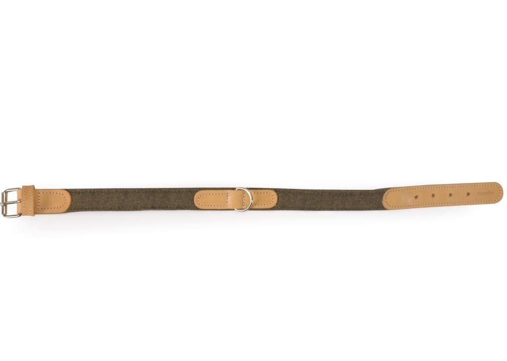 Eleganti e confortevoli collari per cani, realizzati abbinando tessuto e cuoio.