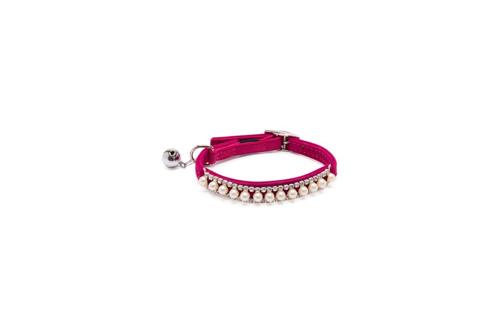Collare in velluto molto morbido per gatti, impreziosito da una fascetta con perle e strass.