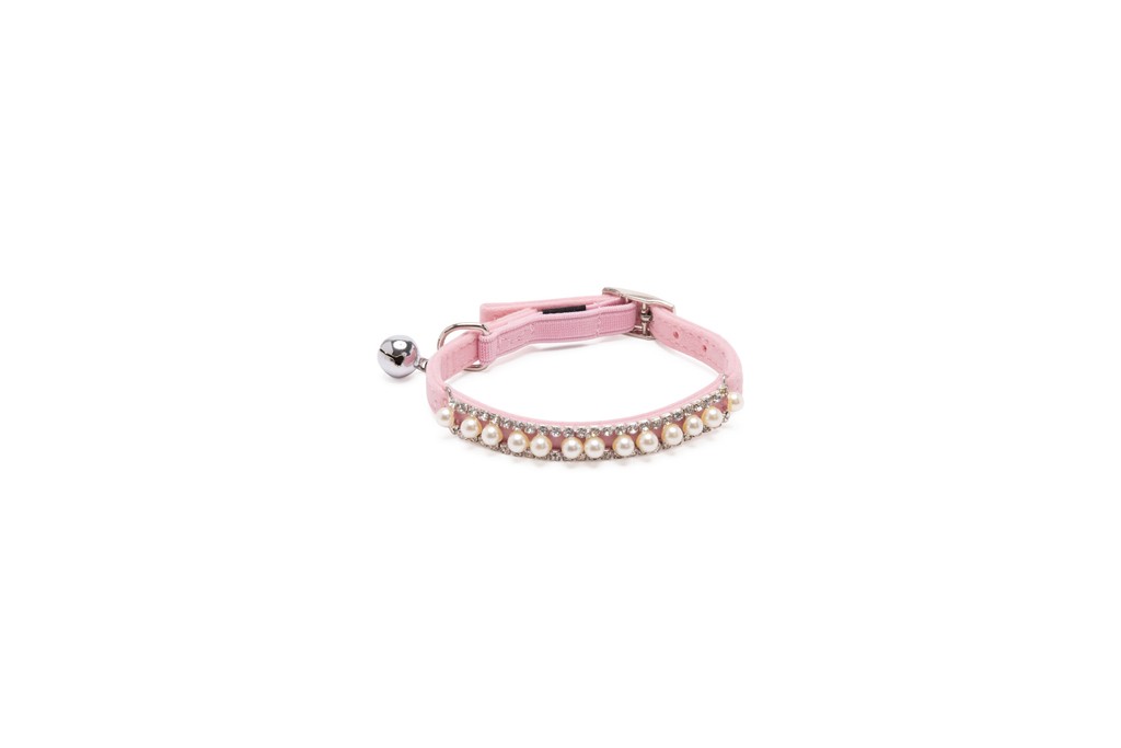 Collare in velluto molto morbido per gatti, impreziosito da una fascetta con perle e strass.