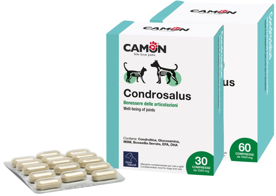 Condrosalus è un alimento complementare con estratti di Equiseto e Boswellia Serrata, Condroitina, Glucosamina, MSM, EPA, DHA che, grazie a tali preziosi ingredienti, è un utile supporto per il benessere delle articolazioni.