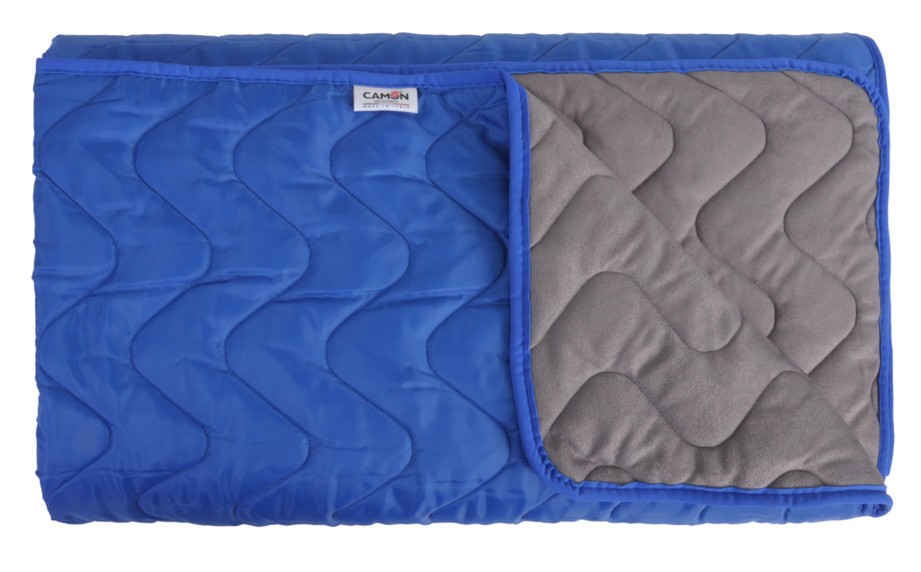 Pratica ed elegante coperta trapuntata bicolore blu-grigia in microfibra.
