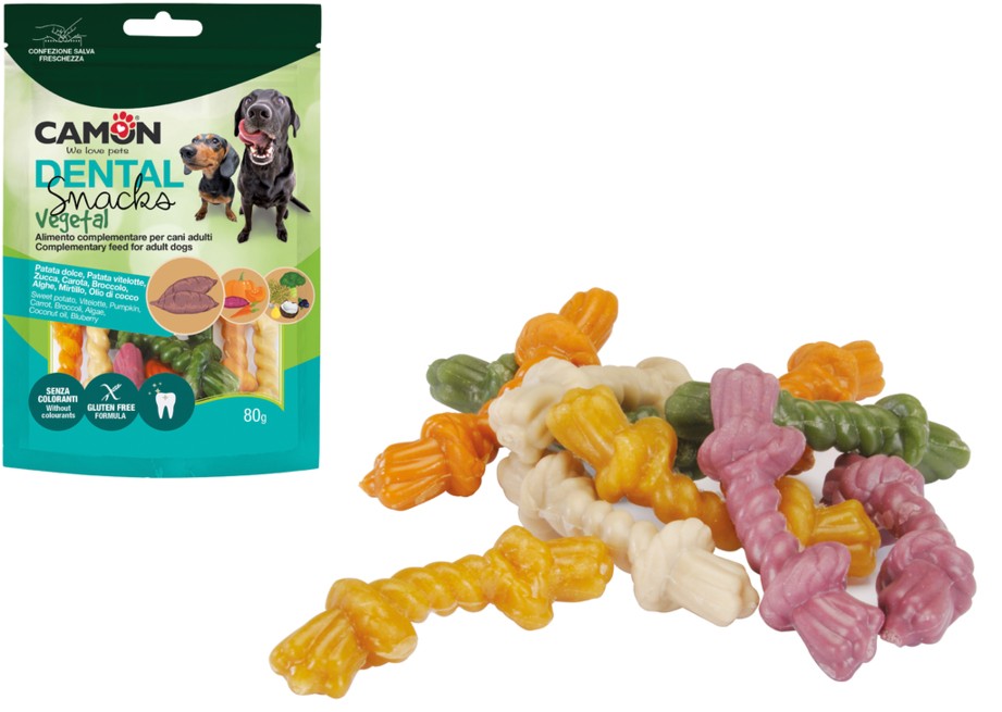Deliziosi e particolari snack dentali vegetali a forma di cotonosso.
