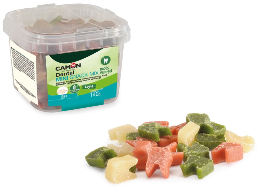 Dental snack a forma di mini dentini con riso