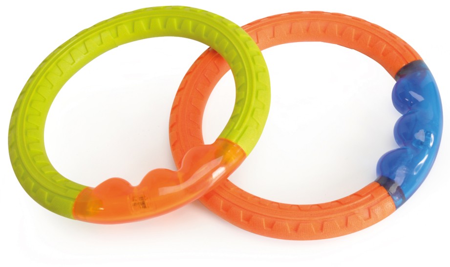 Divertente gioco per cani nella forma di un anello bicolore in TPR.