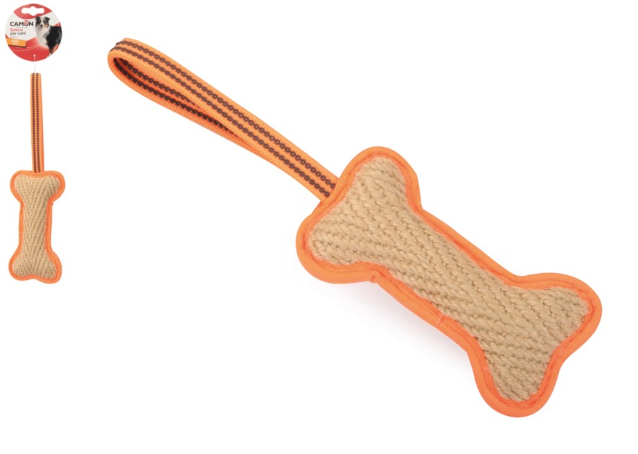 Gioco per cani - riportino in juta a forma di osso con maniglia