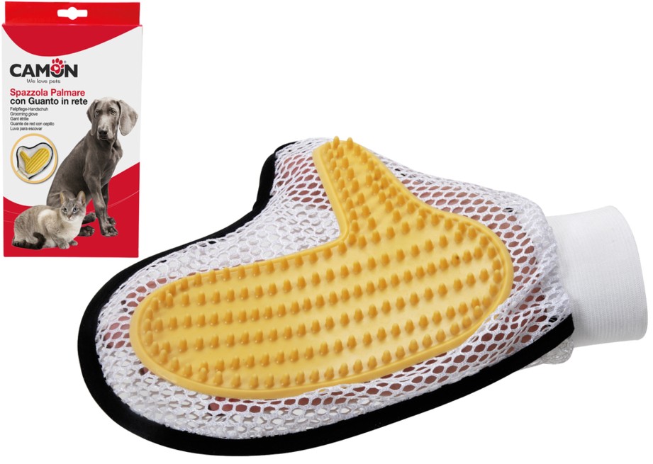 Questa spazzola palmare, speciale per cani a pelo ruvido e per cani e gatti a pelo corto, è dotata di guanto in rete, che si adatta perfettamente alla vostra mano, rendendo la spazzolatura più confortevole sia per voi che per il vostro animale. Rimuove efficacemente il sottopelo ed il pelo in muta con un tenero massaggio.