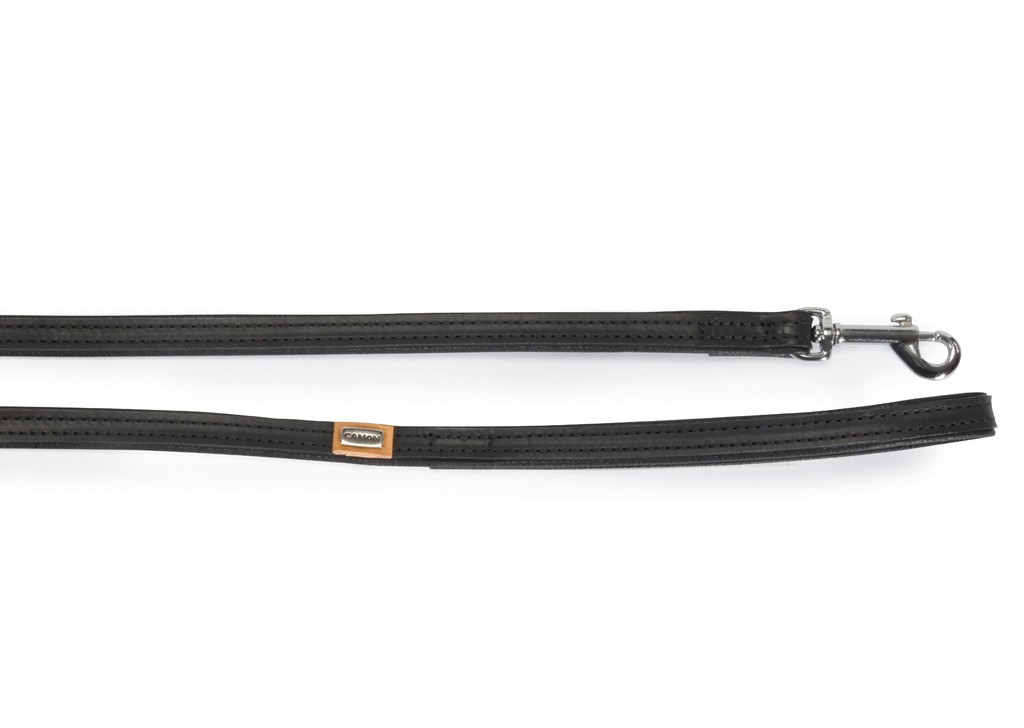 Elegante guinzaglio in cuoio foderato sintetico cucito con finiture in cuoio.