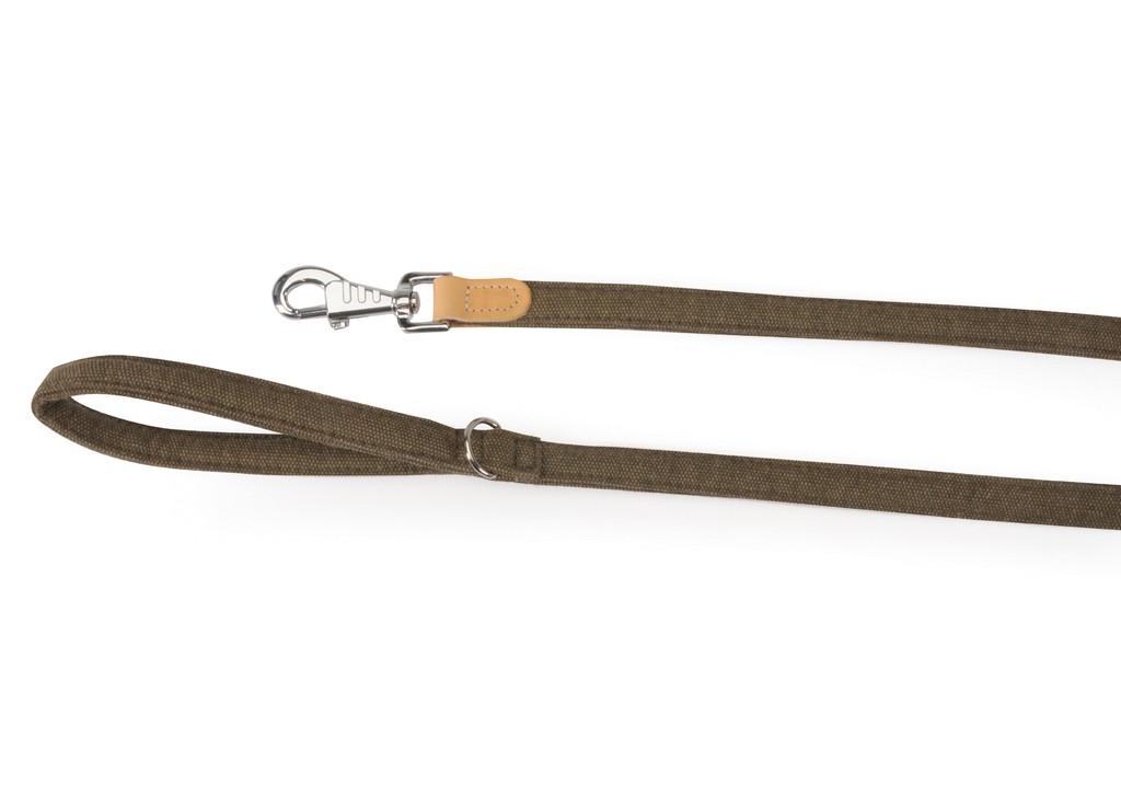 Eleganti e confortevoli guinzagli per cani, realizzati abbinando tessuto e cuoio.