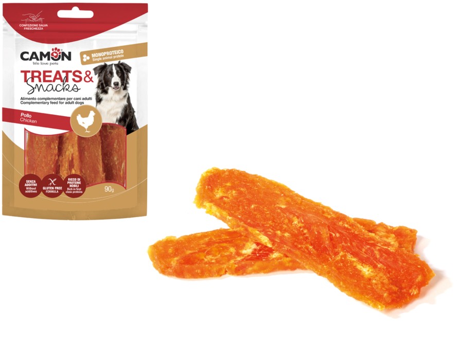 Sfiziosi jerky di pollo croccante, un utile alimento complementare masticabile per il cane.