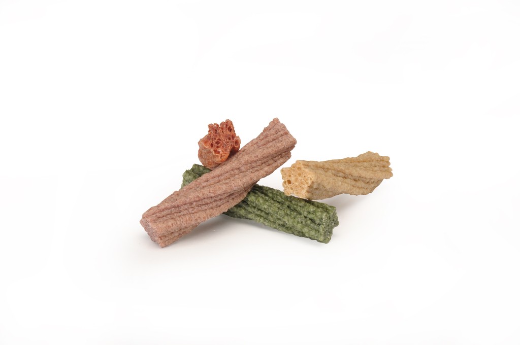 Deliziosi e morbidi snack aromatizzati alla vaniglia, con patata dolce e pollo, uno sfizioso alimento complementare dentale per cani.