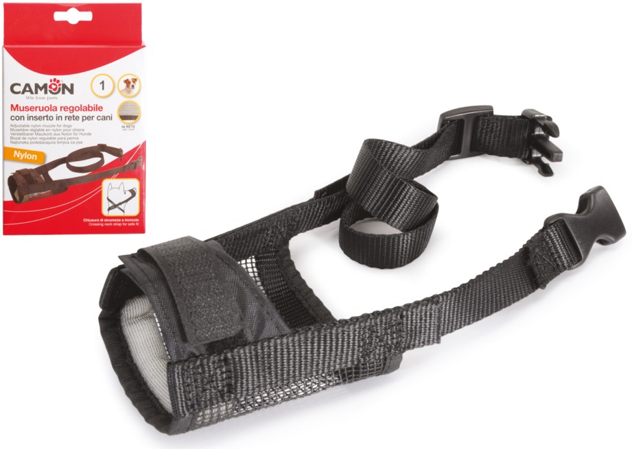 Museruola regolabile in nylon con inserto in rete